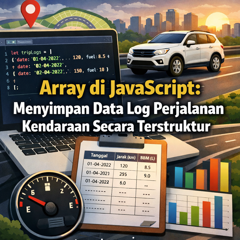 Kalau ngomongin soal kendaraan, kita pasti pernah merekam perjalanan, start dari jam berapa, ke mana, sampai berapa kilometer sudah ditempuh. Nah, di dunia pemrograman, khususnya JavaScript, untuk menyimpan dan mengatur data perjalanan seperti itu kita butuh sesuatu yang namanya *array*. Artikel ini cocok buat kamu yang sudah mulai ngulik JavaScript dan pengen tahu gimana cara menyimpan data log perjalanan kendaraan secara rapi dan terstruktur.